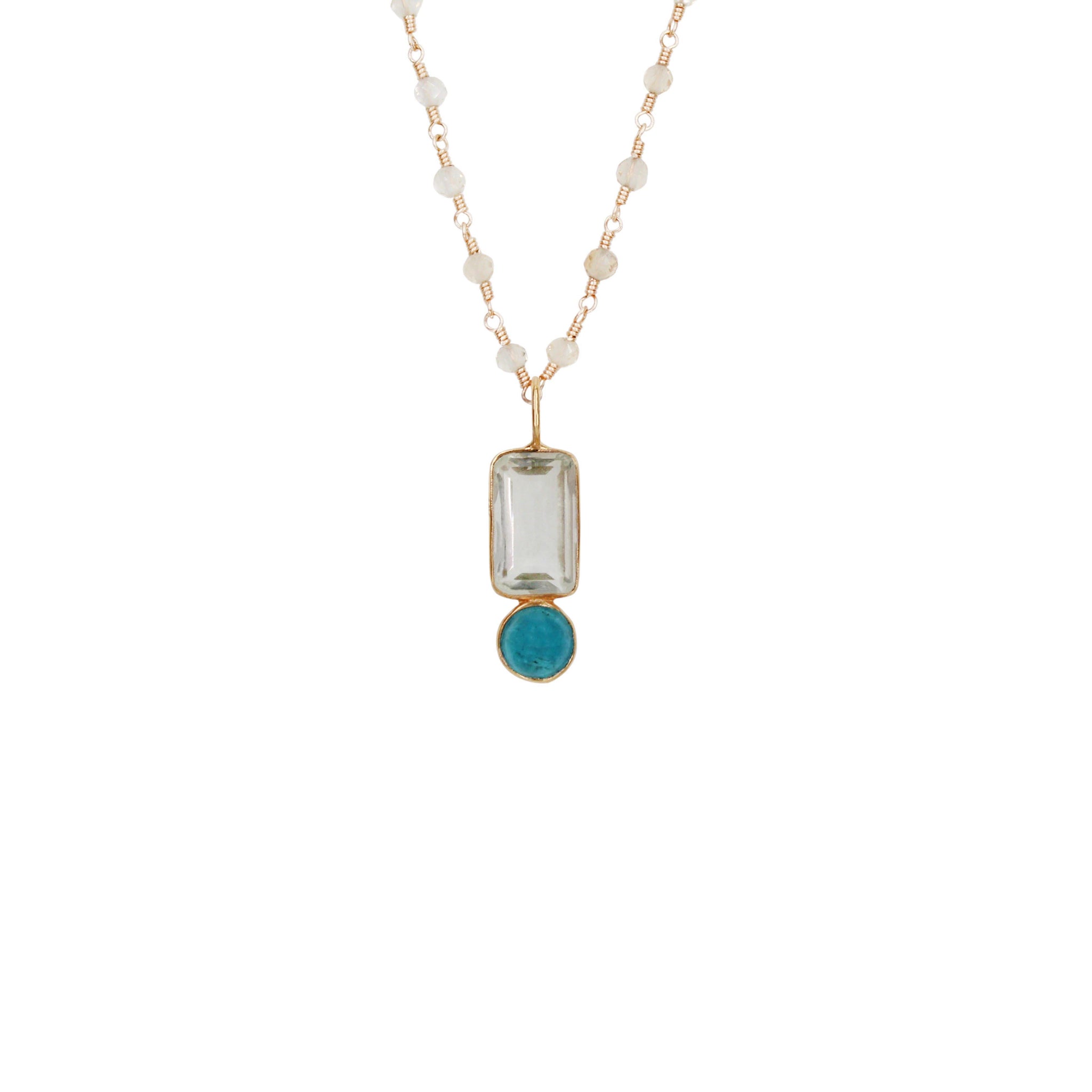 An exclamation of simplistic styling in topaz and apatite that has been handset in solid 14k gold by artisans in Jaipur's Pink City.